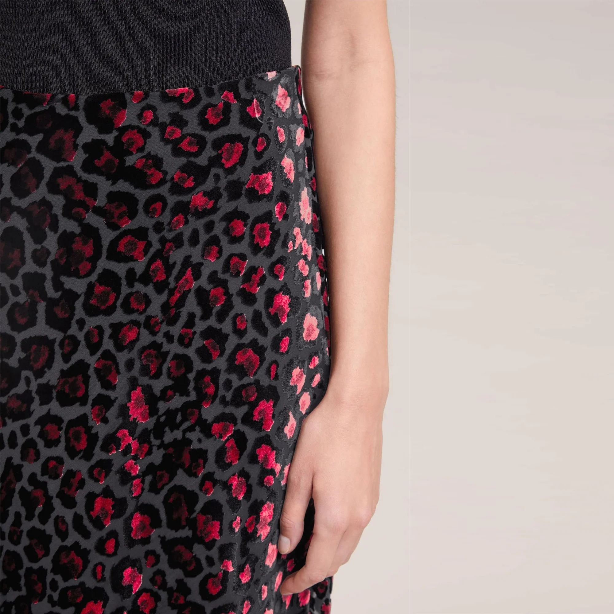 Scarlett Devore Bias Cut Skirt - Red Leopard Devore