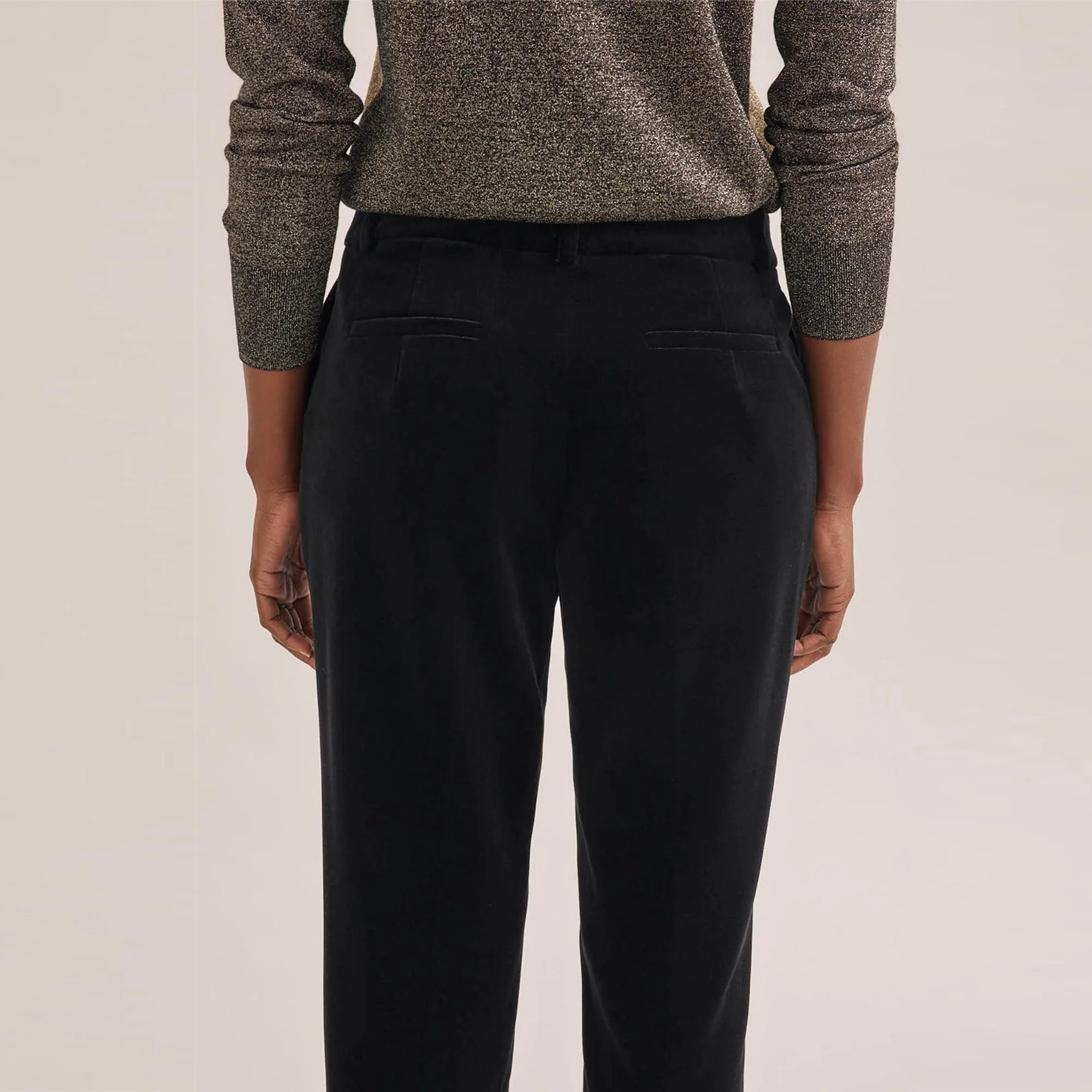 Tatum Tapered Cotton Velvet Trousers - Black