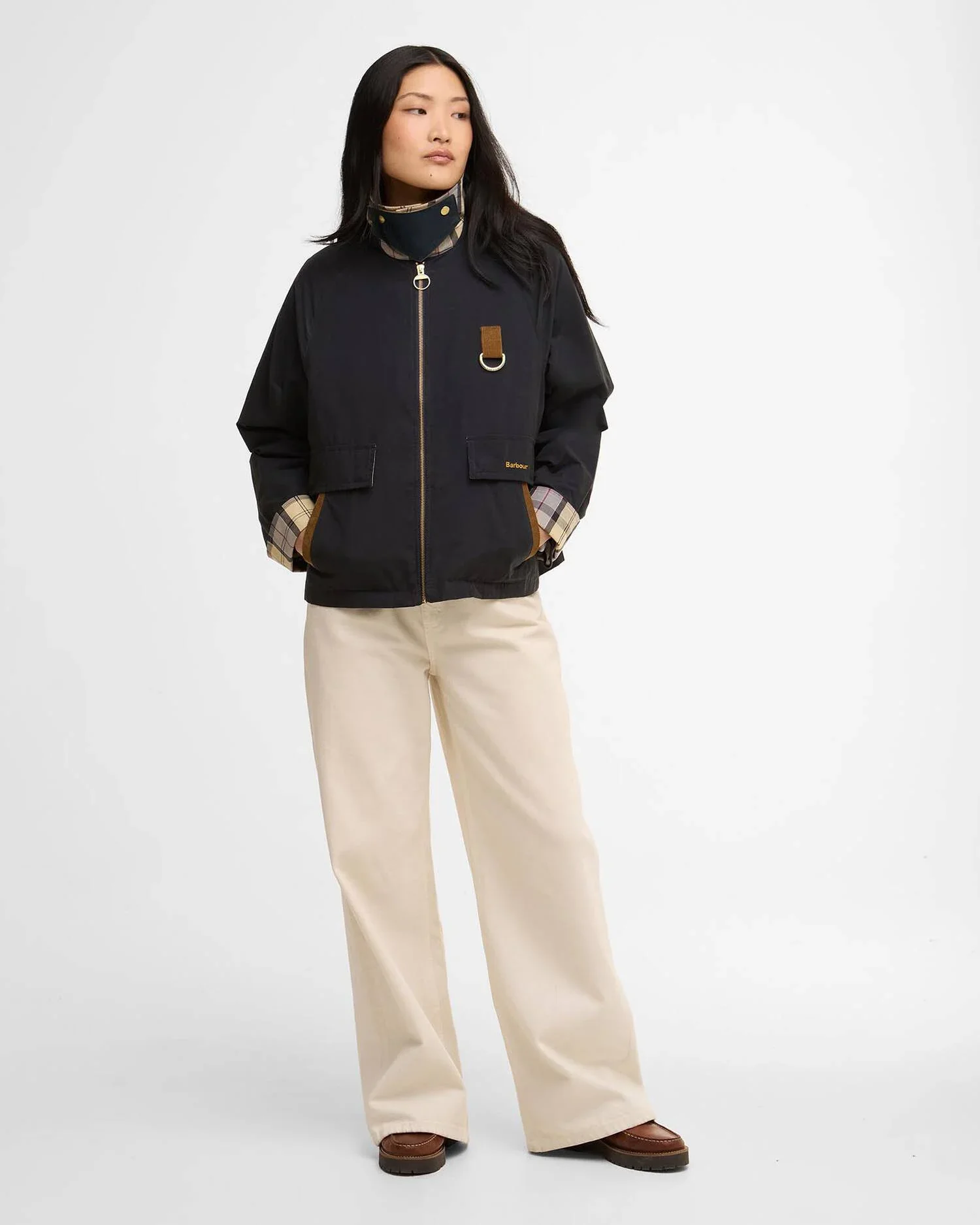 Barbour Icons Spey Showerproof Jacket in Dark Navy with Dress collar detail combines practical weather protection with refined styling. Crafted from lightweight showerproof fabric, this jacket sheds light rain and moisture without bulk, making it ideal for unpredictable British weather. The contrast corduroy collar adds textural interest and a touch of sophistication, elevating everyday wear. Perfect for layering over knitwear or wearing solo during transitional seasons.