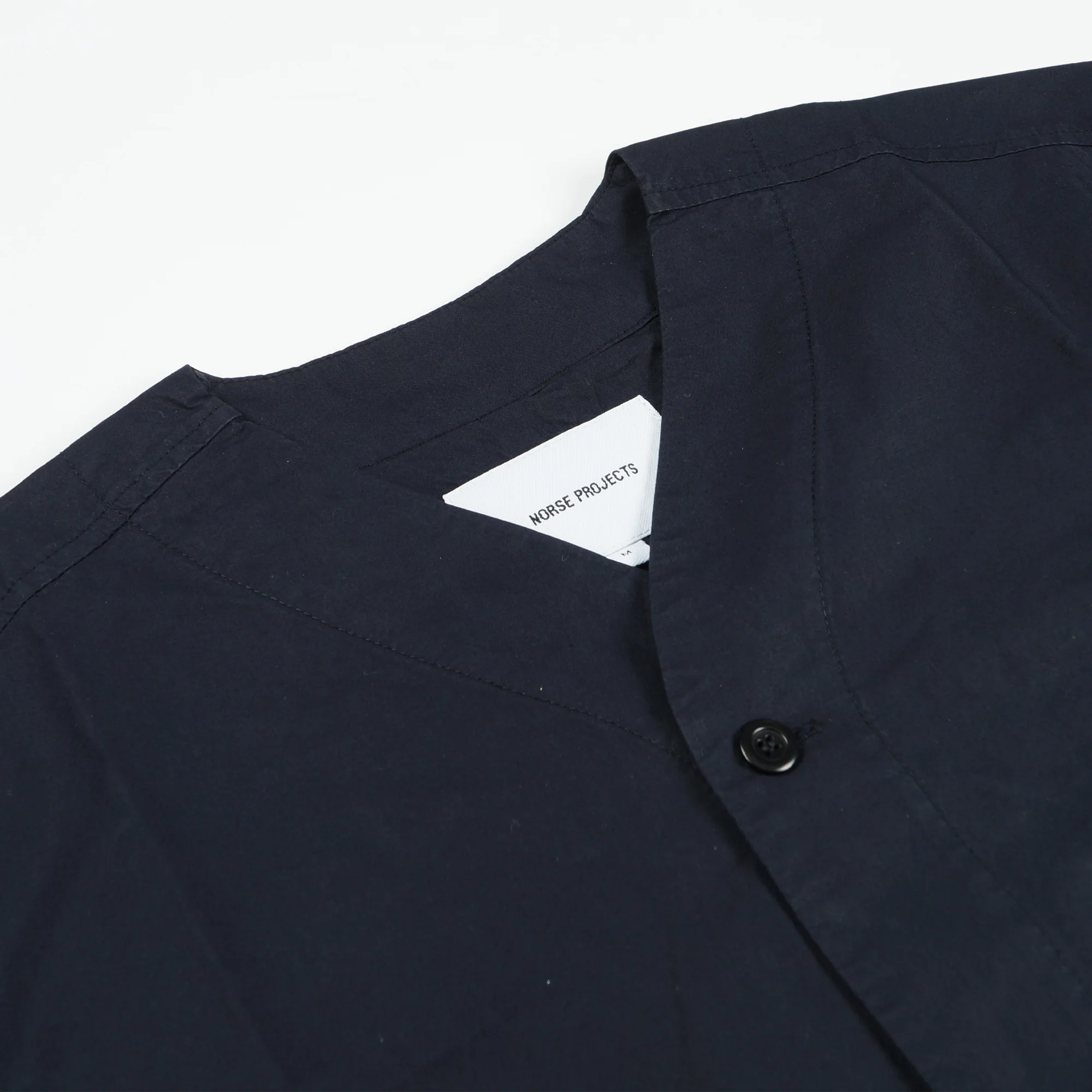 Norse Projects hails from one of the most exciting fashion influential and contemporary cities at the moment, Copenhagen. They fuse iconic Scandinavian style with their unique influences, creating a brand inspired by nature and modern street style. Enhance your wardrobe with a pop of colour with this Norse Project option. This Erwin shirt features a V- neckline, a patch pocket, short sleeves, and a mother of pearl button up fastening. Wear this trouser with a pair of nn07 trousers and some Paul Smith trainers.