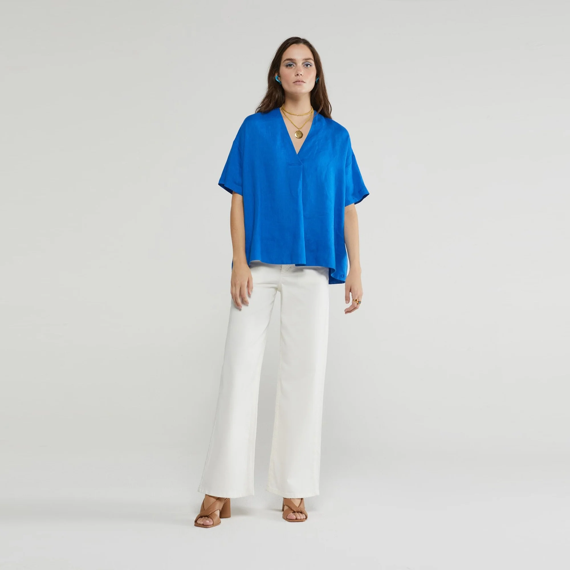 An Italian breath of life to womenswear, Ottod’Ame has one vision, which is to bring strong, elegant, and fresh designs to the market. Add a great pop of colour your wardrobe this season with a top from Ottod’Ame. A great staple in any wardrobe, this linen top features a V-neckline, wide short sleeves and a flowy hem and is in a stunning blue colour. Wear this top with a the Ottod’Ame cotton pants and some Veja sneakers.